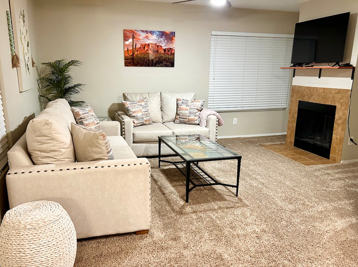 Disfruta de una estancia maravillosa en nuestro apartamento totalmente amueblado en Oro Valley, hogar de belleza natural y recreación. Estancia mínima de 30 días. *Compras y restaurantes cercanos * Parque Estatal Catalina, Cañón Sabino, Cañón Madera, Parque Nacional Saguaro (Este y Oeste) senderismo/observación de aves *Ciclismo en el sistema de senderos Loop de más de 200 millas. * Golf durante todo el año * Parques locales, conciertos, festivales *U de A (y todo lo que ofrece) *Rodeado de espectaculares vistas a Tortolita y Pusch Ridge/Catalina Mtn. Nota: Sujeto a tarifas de temporada.