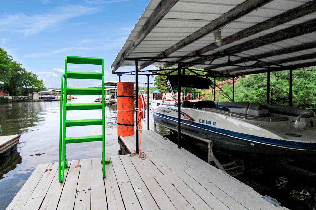 Casa entera en el lago lista para tu próximo retiro en el lago con familiares o amigos. ¡Amplia sala de estar que incluye espacio en la terraza al aire libre con un muelle privado y kayaks para su uso! Observa la puesta de sol en el muelle mientras haces una barbacoa o junto a la chimenea de gas. Acurrúcate junto a la chimenea de leña. **NUEVA opción de ALQUILER DE BARCOS Tritoon o espacio para atracar tu barco. Cerca del Strip, tiendas de comestibles y restaurantes. También hay minigolf, karts y una bodega cerca. Perfecto para un fin de semana o una escapada larga.