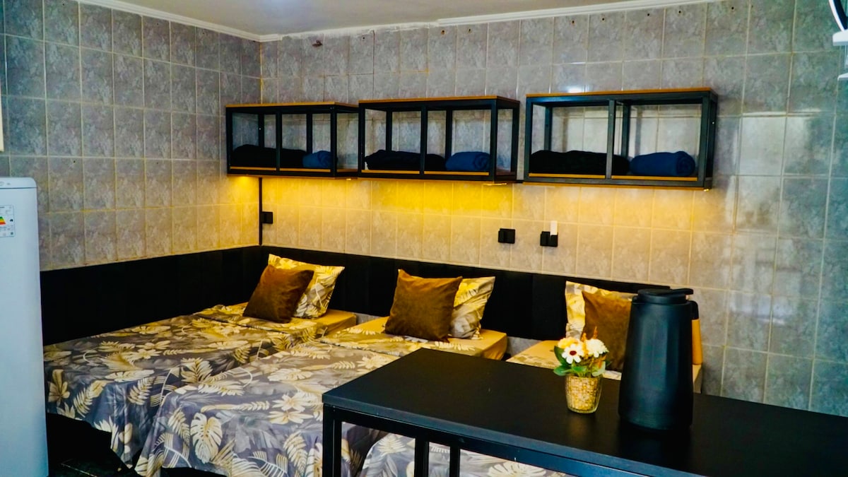 ¡Le damos la bienvenida a su escapada urbana en São Paulo! Este espacioso estudio, ubicado en un complejo con otros 3 estudios, ofrece todo lo que necesita para una estancia perfecta. Con cocina, baño y estacionamiento, tendrás comodidad y un lugar para descansar. Ubicado en el municipio de Taboão da Serra y tiene fácil acceso a la Av. Cerca de la Avenida Paulista, del estadio Morumbi y de la estación de metro Vila Sônia, el barrio ofrece un ambiente tranquilo, con panadería, farmacia y paradas de autobús. Envío obligatorio del documento de identidad