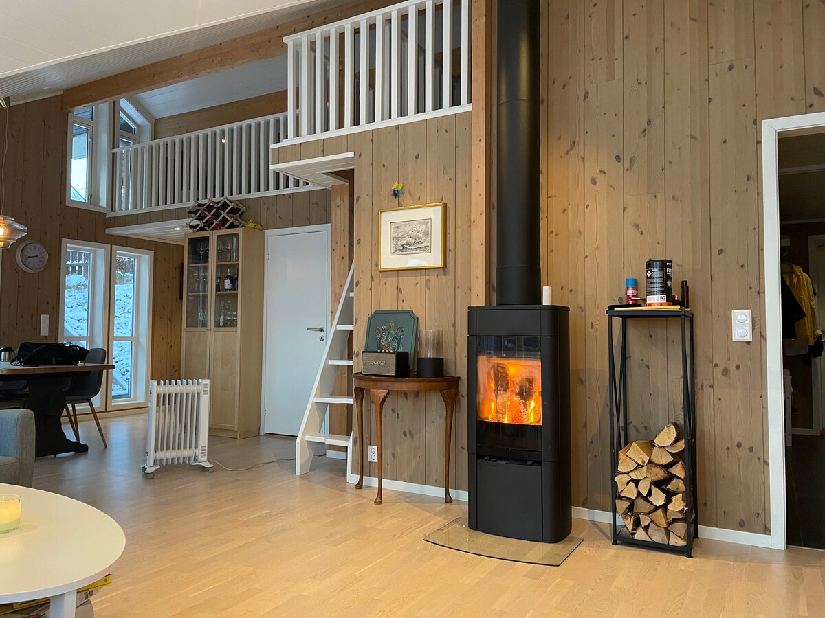 Aparcamiento gratuito a 50 m de la casa. La casa está delicadamente renovada y tiene muchas camas. Salón y cocina abiertos con mesa de comedor y zona de estar, un dormitorio con cama doble, baño con calefacción por suelo radiante y cabina de ducha y lavadero privado. En el segundo piso hay dos dormitorios grandes y otro baño con calefacción por suelo radiante y cabina de ducha. Desde el salón de la primera planta se sale directamente a una plataforma con una gran mesa larga y muchos asientos. Se pueden alquilar sábanas y toallas por 150 NOK por juego, o bien traer las suyas.
