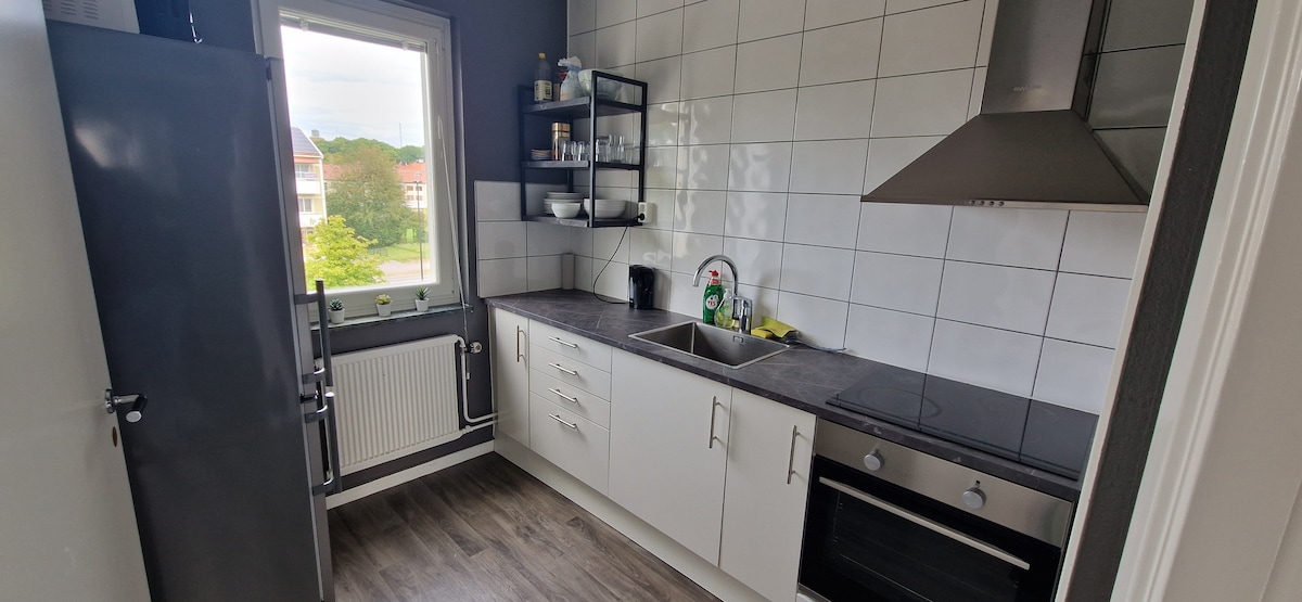 Apartment, with private entrance. 60 sqm in larger villa, in beautiful Västervik. 2,5 rooms, 1 bathroom and kitchen for simple cooking / preparation. 4-5 people live comfortably for a stay in Västervik. Sheets and cleaning are not included. Small children who sleep in their parents' bed can come along without being booked in the reservation. Therefore, if desired, you can be 5 adults and a few small children. Just let us know and remember ther is only one toilet.