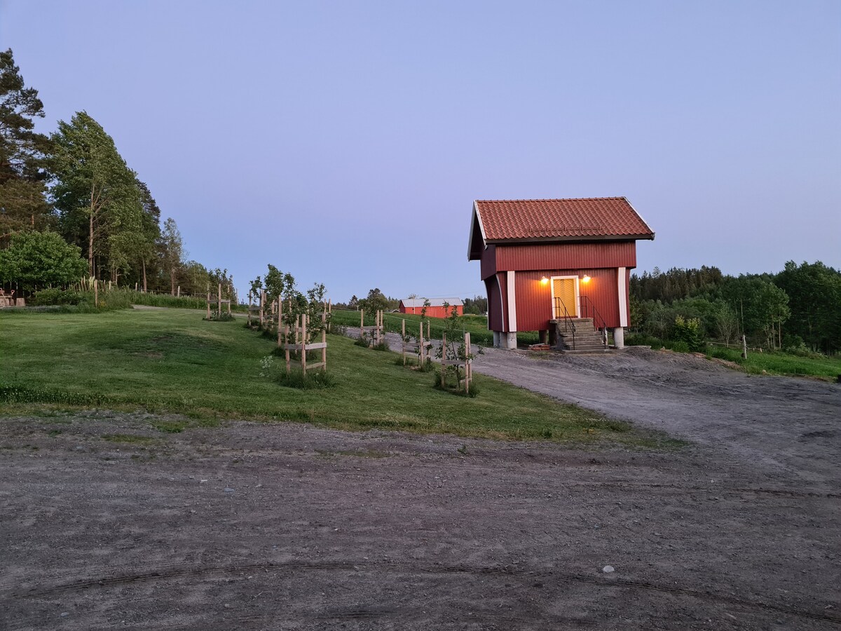 "Skogsbad" se encuentra en un hermoso bosque pequeño con jardín y campos a su alrededor. Una pequeña cabaña con una ventana enorme hace que se sienta como si uno estuviera al aire libre cuando se sienta dentro de la cabina. Es un lugar tranquilo y natural, perfecto para los amantes del yoga y la naturaleza. La cabaña tiene electricidad y calefacción. El baño y la cocina están a 50 metros de distancia