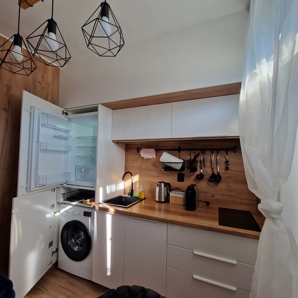 Departamento moderno con dos dormitorios separados con vistas perfectas a toda la plaza. Inodoro y baño separados con tina. Una cocina moderna que creo en todo lo que usarás para tus viajes. El apartamento está situado en la primera planta de un edificio de apartamentos, encima de un restaurante de lujo. Esta es una casa muy tranquila y nos gustaría que nuestros huéspedes fueran tolerantes y respetuosos con las demás personas de la casa. ¡Esperamos verte en Ostrava!