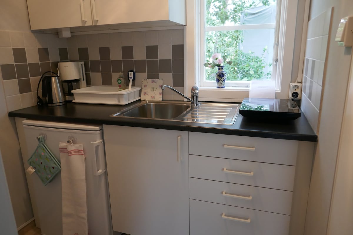 Nuestra cabaña es de planta abierta. Justo fuera de la cabaña, el sendero de peregrinación y el sendero de la biosfera se dirigen hacia el área de pesca de Spiken y se dirigen al castillo de Läckö. La distancia a la zona de pesca de Spiken es de unos 3 km y al castillo de Läckö, a unos 4 km. Kållandsö tiene muchas rutas de senderismo agradables además del sendero de peregrinación y el sendero de la biosfera. El castillo de Läckö y la zona de pesca de Spiken son excursiones agradables y agradables. Al otro lado de Kinneviken está Kinnekulle, que también tiene muchas excursiones agradables.
