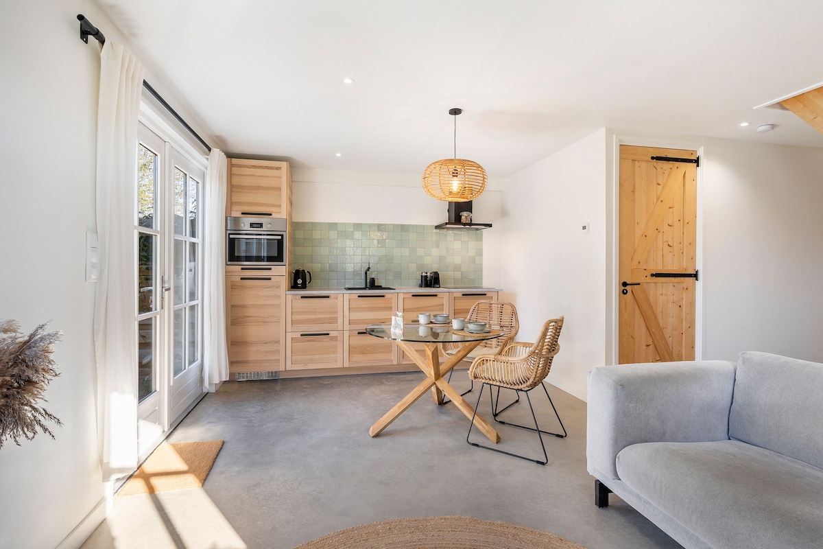 Este apartamento ofrece mucha privacidad con su propio jardín protegido y entrada. En la planta baja hay una acogedora sala de estar con cocina abierta y las puertas francesas proporcionan mucha luz y espacio. Además de la calefacción por suelo radiante, hay una acogedora estufa de leña. A través de una escalera abierta se entra en la zona de dormir, en la que hay 1 cama doble espaciosa y 2 camas individuales, parcialmente protegidas por paredes. Por traer a tu perro, cobramos 15 euros en efectivo a tu llegada. Todos los espacios están acabados con materiales naturales elegantes. Toda la planta tiene calefacción por suelo radiante. La acogedora sala de estar cuenta con un sofá, estufa de leña y TV con Netflix ( sin conexión de televisión). La cocina está parcialmente separada por la mesa de cocina del tronco del árbol y la encimera de granito. La cocina ofrece la posibilidad de cocinar con electrodomésticos retro Smeg y está equipada con cocina de gas, nevera, lavavajillas, microondas combinado y hervidor de agua. El baño emana un ambiente sureño con un suelo de piedras de guijarros y un tazón de piedra del río. Hay una lavadora y una aspiradora en la lavandería cerrada. Hay una zona de aseo independiente. El loft para dormir se divide en dos partes, con la lujosa cama doble a un lado de la pared y las dos camas individuales separadas al otro. El espacio con el suelo de madera y las camas se siente inmediatamente relajado. El apartamento está a pocos pasos del casco antiguo, donde hay un acogedor centro de pueblo con tiendas. En bicicleta, se puede llegar a la playa en 10 minutos. El apartamento es completamente de nueva construcción y es acogedor y muy ligero en términos de ambiente, rápidamente te sientes como en casa. Puedes cocinar por tu cuenta, si lo deseas. Una vez que entras, obtienes una sensación de vacaciones, ya que la decoración es un estilo de playa relajado. El acabado es muy lujoso. Los huéspedes del apartamento pueden participar en las clases de yoga de Yogastudio Ouddorp a media tarifa. El estudio está situado al lado del apartamento. Los viajeros tienen su propio jardín privado, que está completamente protegido por una valla. En el jardín hay una acogedora zona de estar, sillas relajantes y una gran mesa de pícnic. Mi novio y yo estamos disponibles por correo electrónico, whats app y teléfono. El pintoresco Ouddorp es una pequeña localidad costera junto al mar con un centro acogedor y una playa de arena de no menos de 17 kilómetros de largo. La naturaleza es hermosa y los alrededores son ideales para practicar surf, ciclismo y senderismo. El centro está literalmente a poca distancia a pie. Una deliciosa panadería de verdad está a la vuelta de la esquina. Los supermercados también están muy cerca. Alrededor de la iglesia hay acogedoras tiendas y terrazas. La playa es amplia y encantadora con algunos clubes de playa geniales. La parada de autobús es adyacente al jardín. El aparcamiento es gratuito en Stationsweg, justo al lado del apartamento.