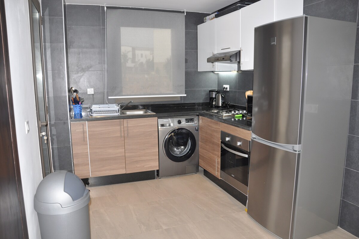 Apartamento moderno en el corazón del centro turístico de Agadir con piscina y jardín situado a 10 minutos (a pie) de la playa y a 400 metros del supermercado/Pizza Hut. En el barrio están las mejores cafeterías y restaurantes. ¡Muy buen equipamiento!