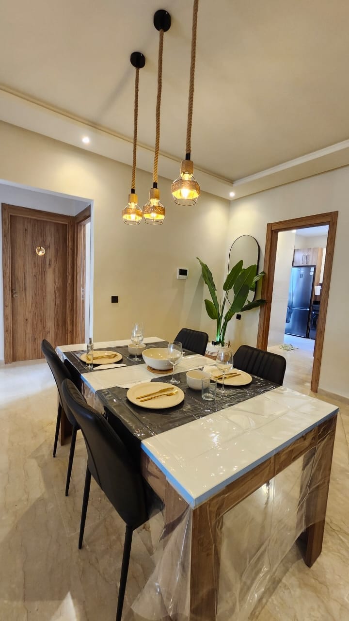 Bienvenido a nuestro luminoso y espacioso apartamento idealmente situado en la planta baja de un edificio en un animado barrio en el corazón de Agadir A pocos pasos de las mejores atracciones, -restaurantes café Y supermercados - transporte público - Supermercado y farmacia cerca, playa a 12 min Ideal para parejas, familias o viajeros de negocios; ¡un pequeño gesto para que se sienta bienvenido! Ofrecemos una cesta de frutas frescas y botellas de agua gratis