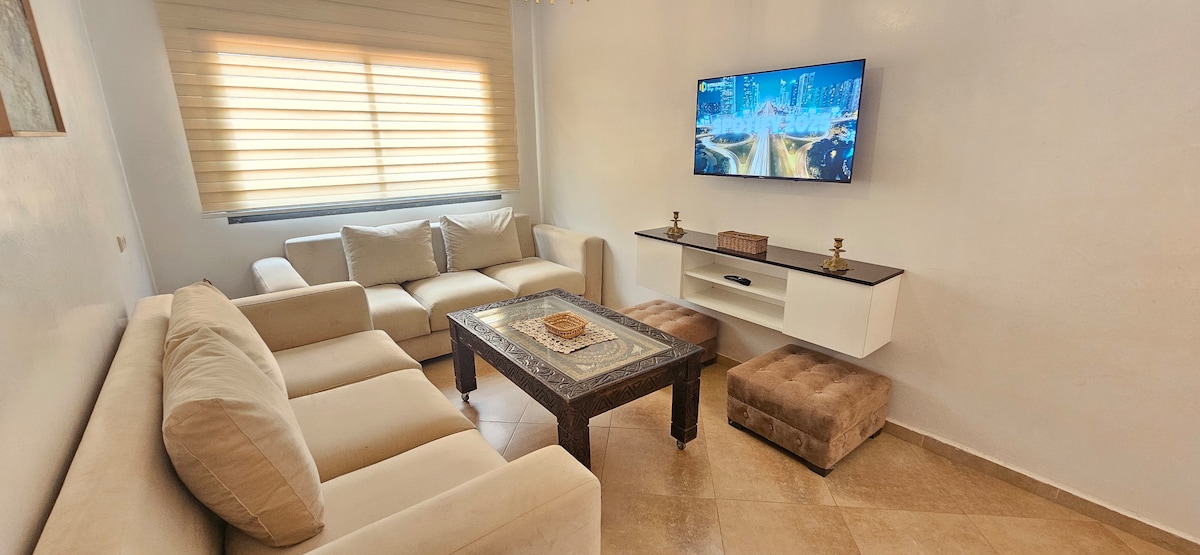 Un apartamento muy bonito que no está lejos de la playa y también cerca del centro de la ciudad. El apartamento tiene una cocina bien equipada, baño, dormitorio bien ventilado, comedor, sala de estar marroquí, wifi y terraza.