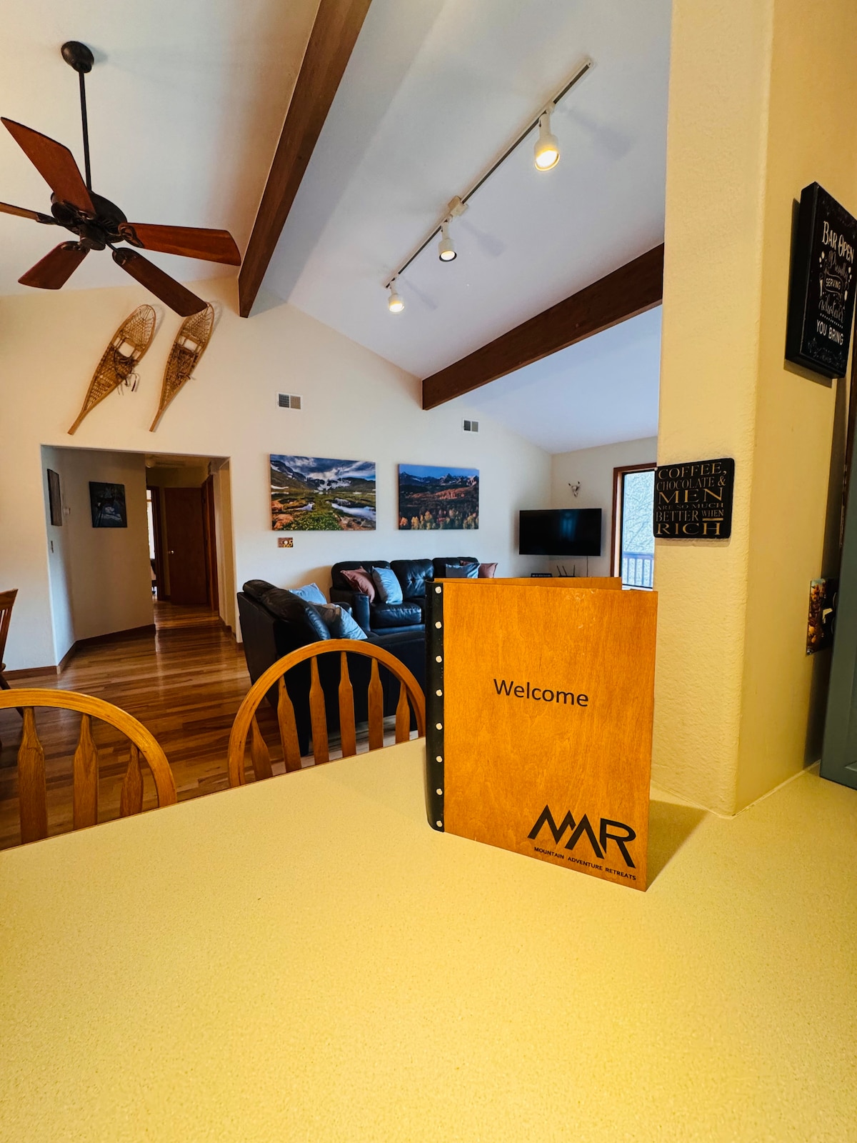 ¡Trae a tu familia! Hermosa casa con plano de piso abierto, dormitorio principal de lujo y lujoso baño principal. Ubicado entre Ouray y Ridgway, es la ubicación perfecta para todos tus deseos de vacaciones; lo mejor para hacer senderismo, escalada, ciclismo, jeeping, esquí; realmente, cualquier actividad al aire libre. El monte Abram está al final del valle desde el patio trasero, una vista encantadora. Corbett Peak se ve mientras miras al rincón de la cocina. Cada día la vista es diferente. ¡Internet de fibra súper rápido! STR-1-2024-057