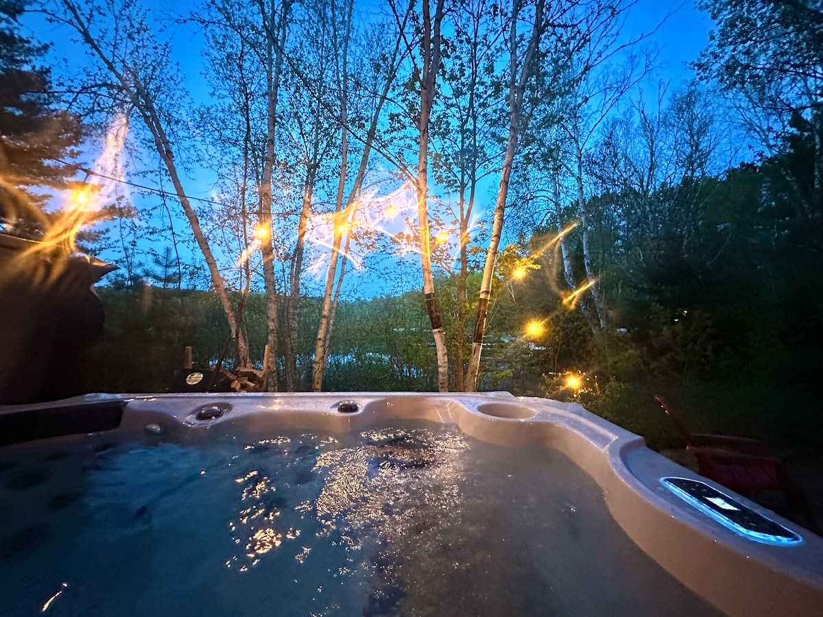 Escápate a nuestra casa mejor valorada, frente al lago, un refugio mejorado de 3 dormitorios + barracón separado, 2 baños, para todas las estaciones, a solo 1 hora y 20 minutos de Parliament Hill. Con impresionantes vistas, un porche con mosquitero, un increíble muelle de verano, una relajante chimenea al aire libre, kayaks, raquetas de nieve, una acogedora chimenea y espacio para 8 personas, esta no es una escapada cualquiera. Totalmente equipado, muy bien mantenido y perfecto durante todo el año. Una escapada tranquila a la naturaleza con todas las comodidades del hogar, ¡y algo más!