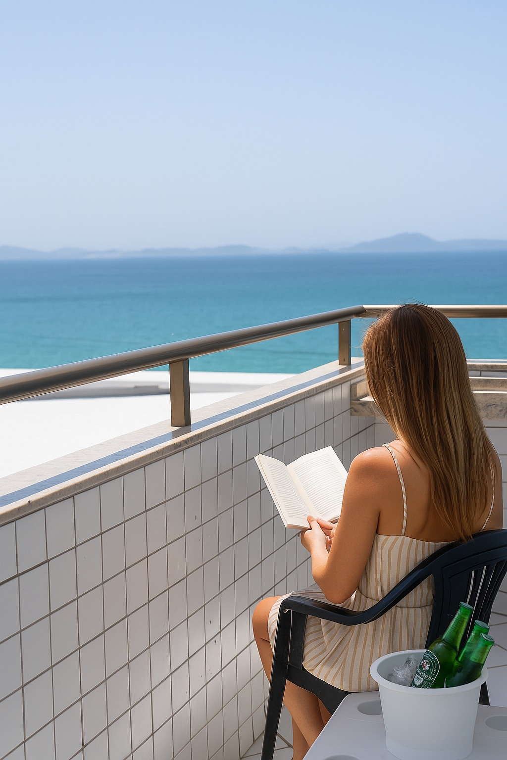 Desfrute de uma estadia acolhedora e elegante na charmosa Prainha, em Arraial do Cabo. Localizado no 3º andar, este apartamento oferece vista para o mar e está a apenas uma quadra da praia. Conta com uma suíte e um quarto, ambos com ar-condicionado e confortáveis camas Queen Size. A sala possui sofá-cama, Smart TV 55” com IPTV e Wi-Fi. Ambientes arejados com ventiladores de teto, cozinha equipada e uma vaga de garagem. Prédio com portaria 24h para sua tranquilidade.