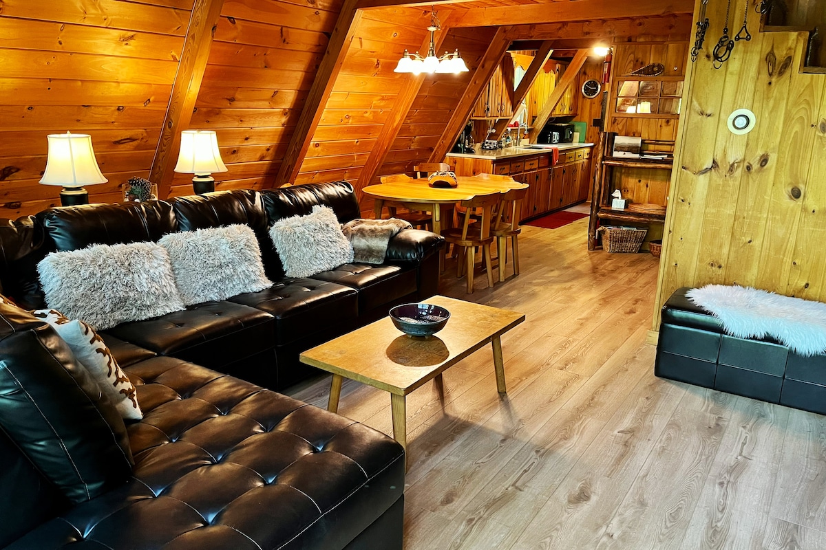 Escape de montaña de alta tecnología amigable para mascotas y familias por lago, senderos y montañas Las comodidades incluyen: Internet de alta velocidad/WiFi Roku TV dedicado al espacio de trabajo terraza grande con vistas a acres boscosos patio trasero cercado perfecto para perros cocina completa con utensilios de cocina aire acondicionado de lavadora y secadora estufa de leña suplementaria (interior) Foso de fuego (afuera) 10 millas de senderos comunitarios privados para senderismo/esquí y lago para kayak y pesca parque infantil comunitario, canchas de tenis, parrilla/área de picnic.
