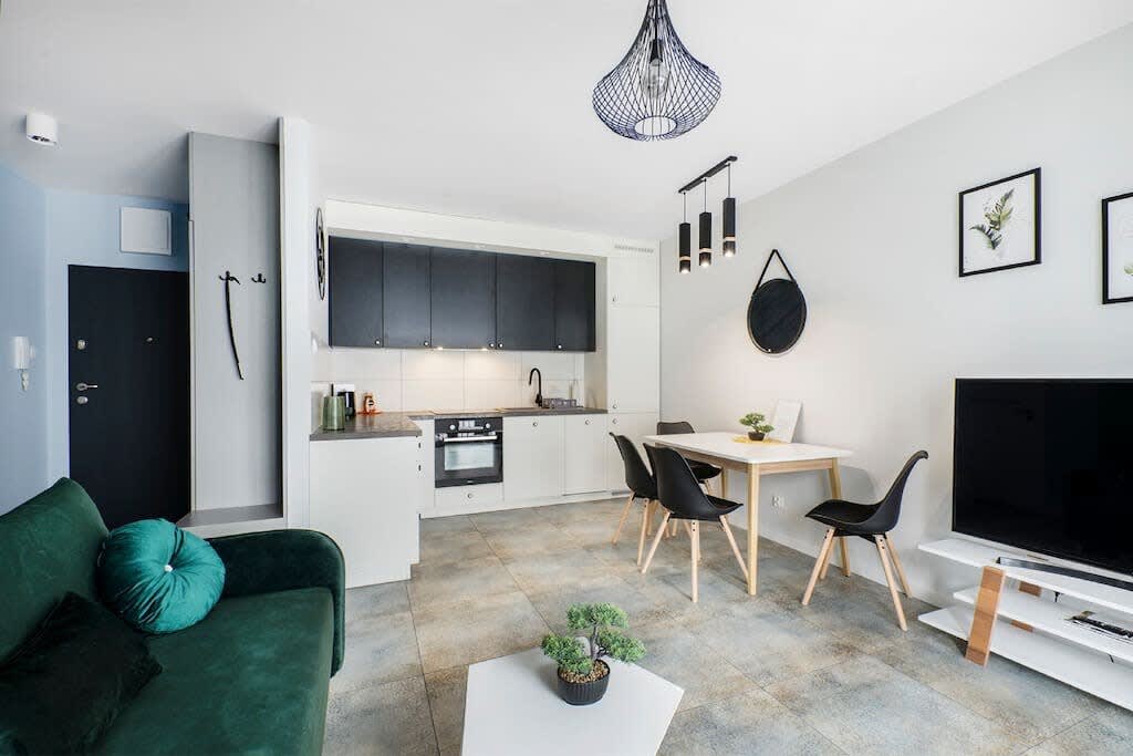 ¡Bienvenido a nuestros acogedores y luminosos departamentos en Łódź! Los apartamentos están convenientemente ubicados cerca de cafeterías y restaurantes, lo que los convierte en una opción ideal para tu estancia. En los alrededores, encontrarás el Parque de Józef Poniatowski, un lugar encantador para pasear y relajarse, ¡así como muchas actividades culturales y de entretenimiento! Perfecto para familias y viajeros solos por igual. ¡Estamos encantados de darte la bienvenida a nuestros departamentos y haremos todo lo posible para que tu estancia sea inolvidable!