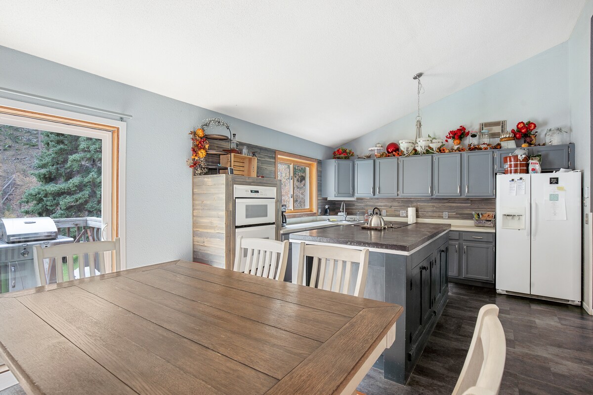 Una joya escondida en el corazón de las Colinas Negras, nuestra cabaña está ubicada en 3 acres privados llamados cariñosamente Squirrel Hill. Con cubiertas en todas las direcciones, te animamos a que disfrutes de la abundancia de la naturaleza. Busca ciervos, pavos, pájaros y ardillas. Relájate bajo los pinos en el jacuzzi o en la terraza con chimenea de gas y mesa para 10 personas. En el interior encontrarás todo lo necesario para una escapada bien equipada. A un mundo de distancia del ajetreo y el bullicio de la vida real, a solo 10 minutos al oeste de Rapid City.