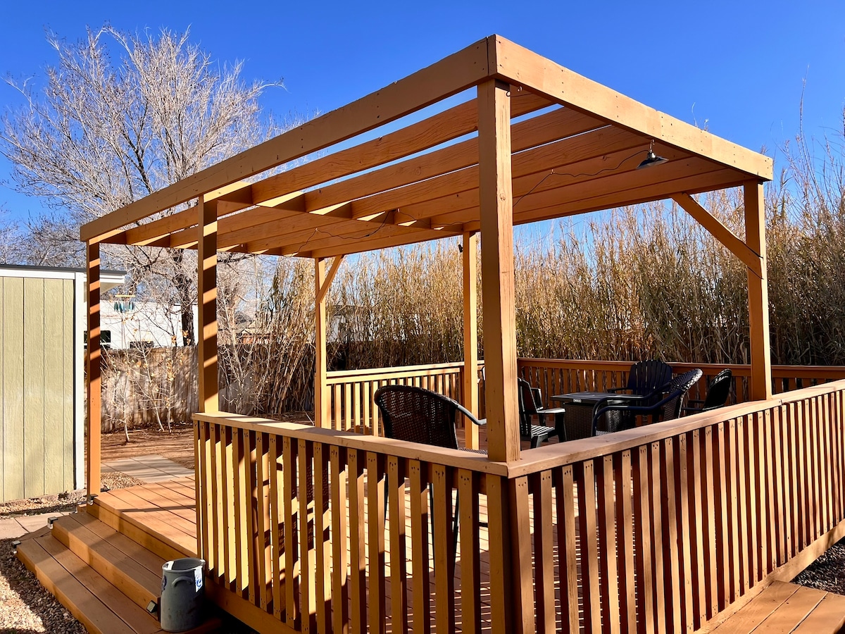 💜Awaken to the sound of morning doves in your Artist Inspired Guest Suite, small & cozy, peaceful, safe, family neighborhood ❤️Private Entry 🧡Private Backyard, Deck & Bistro 💛Master BR w Queen Bed 💚Private Bath 🩵Mini microwave, Mini Fridge, Keurig/Coffee/Tea/No Kitchen 💙1 mi-Restaurants - you can easily walk into town for restaurants and shops in about 15 minutes 💜1 mi walk to Hike the Rim Trail w Magnificent Views 💛3 mi-Horseshoe Bend 🧡7 mi-Antelope Canyons