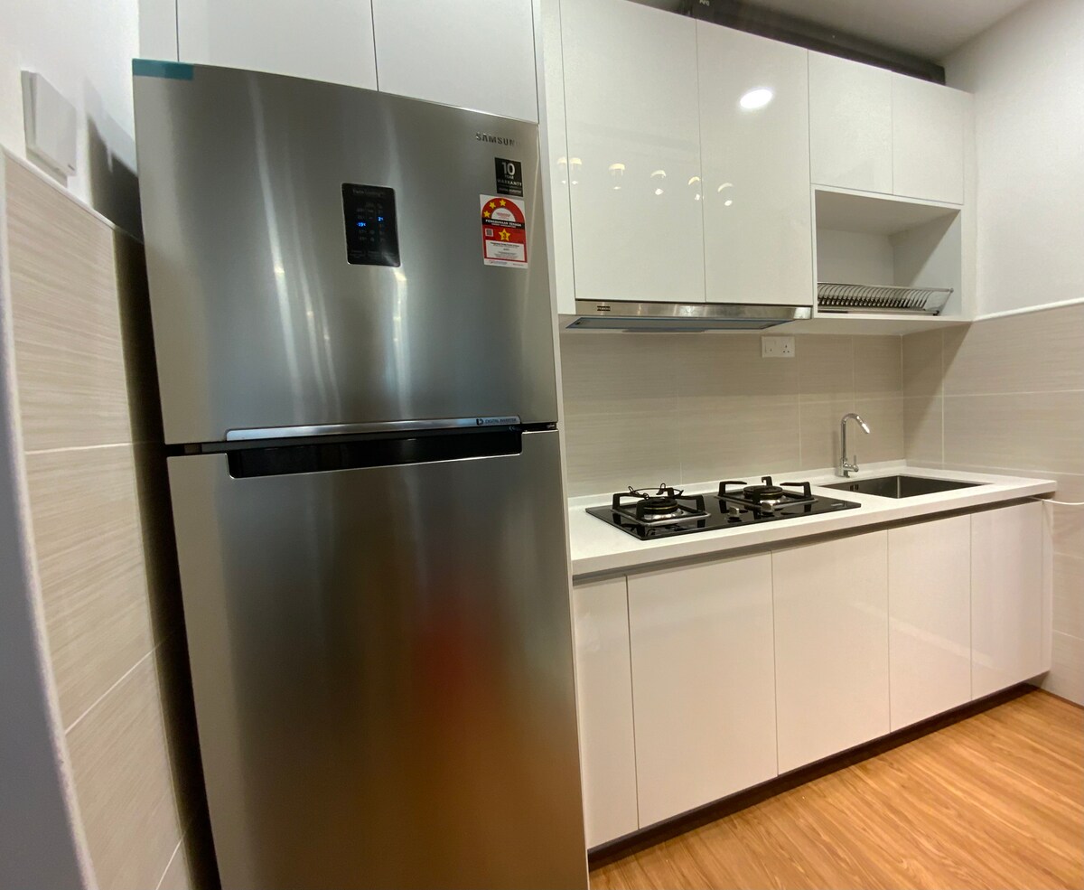 📍Pertama Residency Welcome to my New Bnb - Moonrise City! Este estudio está recién preparado con mucho amor, combina la decoración contemporánea con comodidades modernas y una experiencia, todos pueden disfrutar especialmente del momento del jacuzzi con tu amor y pantalla de proyector de 120pulgadas con Netflix. Este lugar único tiene un estilo propio, ofrece un ambiente acogedor, limpio, tranquilo y refrescante para parejas. ¡Ven y experimenta en el nuevo bnb! Nos vemos.