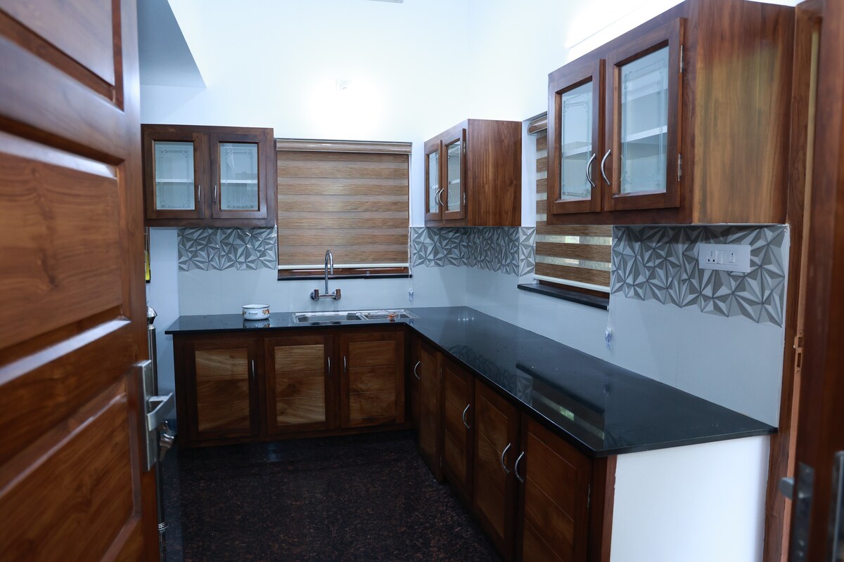 Just 1.8 km from Pala near Mundupalam Junction, this home sits in a quiet lane. It has 3 bedrooms with attached bathrooms and 2 rooms have AC. There are 4 beds and it is comfortable for 6 guests. WiFi and power backup are available. Parking is inside the gate and works best for 1 car, with space multiple two wheelers too. The kitchen is set up for light cooking and food delivery apps work well here. It is a calm place for a quiet stay, so events and parties are not possible.