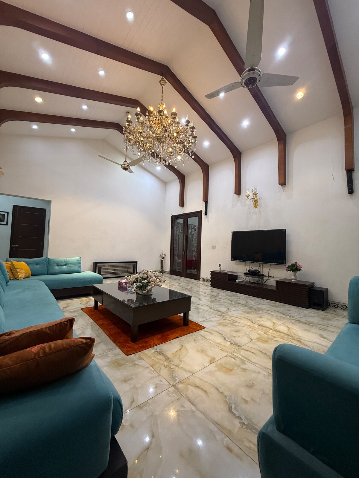 Escápate a esta villa de 6 dormitorios en DHA, fase 7, con capacidad para un máximo de 18 huéspedes. Disfruta de interiores elegantes, 2 comedores, salón de eventos, gimnasio, Q-LED y jardín al aire libre con barbacoa (preventa). Los servicios opcionales incluyen cocinero, conductor, visitas históricas guiadas y alquiler de vehículos. A solo 5 minutos de DHA Raya Dining Hub y a 10 minutos del aeropuerto, es perfecto para vacaciones familiares, bodas o retiros. Los cuidadores se aseguran de que la estadía sea perfecta. Las vacaciones de tus sueños te esperan. ¡Reserva ahora!