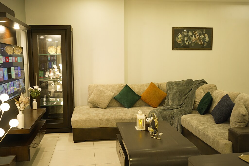 Nuestro apartamento de 1 dormitorio en DHA Fase 5 es donde la elegancia urbana se encuentra con la frescura celestial. Imagina: una pared con una luna brillante para esos selfies nocturnos y una atrevida obra de arte apilada en dólares que grita «energía de personaje principal» Despiértate con vistas al parque desde el columpio de tu balcón privado, disfruta de tus favoritos en el televisor inteligente 4K de 50" o cocina algo estético en la cocina de diseño completamente equipada. ¿Los interiores? Abstractos, elegantes y hechos para el feed. Además, estás justo al lado de los restaurantes más populares de Lahore.