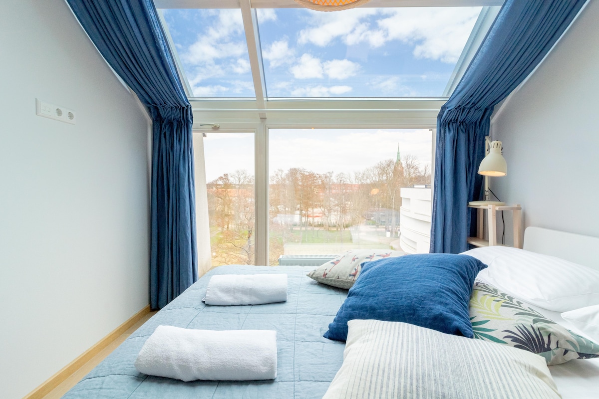Modern and fresh apartment is waiting for you. Here you will have two most important things at the same time: calm atmosphere and city centre just a step away. Find peace and comfort here. Sleep like on the cloud in the bedroom with roof window. Cook like a Gordon Ramsay in the kitchen (kitchen is fully equipped). Rest like a England's Queen in the living room. Enjoy sound of wind in the balcony. Bathroom is sparkling clean like in the Dexter's laboratory. It's like a dream, it's Deja Blue.