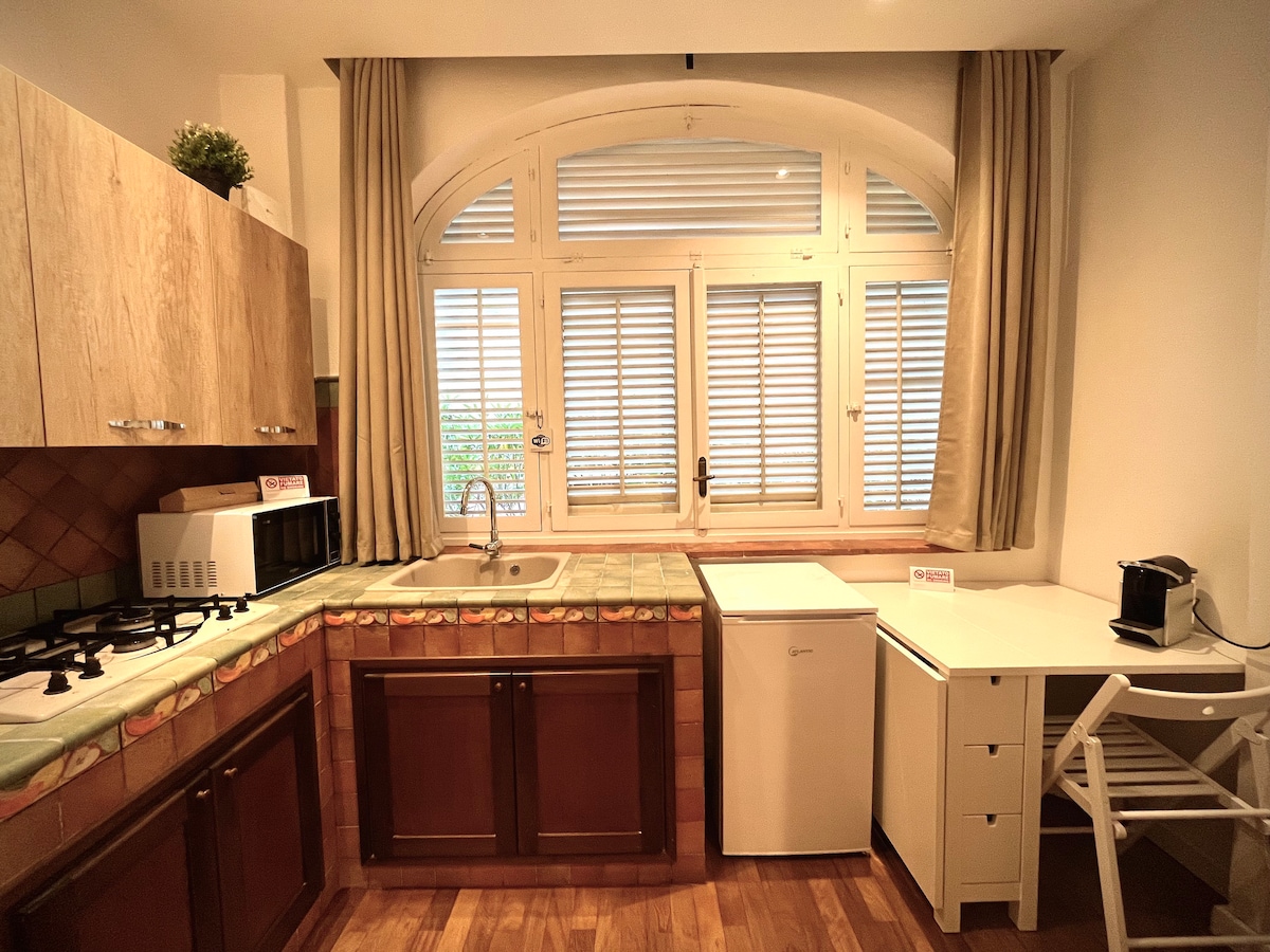 Adéntrate en el lujo y la historia con esta impresionante suite principal, ubicada en la antigua residencia del marqués de Marineo. Esta suite excepcional cuenta con un hermoso dormitorio con baño privado, lo que garantiza comodidad y privacidad. Con amplios espacios privados y la grandeza del pasado, esta suite ofrece una experiencia inolvidable en el corazón de Palermo. El jardín no está dentro de la suite, sino que es un área común con un acceso independiente desde el exterior.