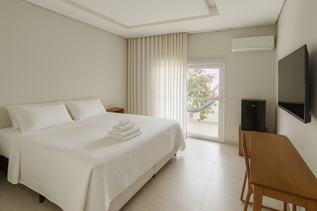 Descanse em um espaço clean, tranquilo e climatizado. Apartamento compacto e completo, ideal para quem busca conforto e praticidade. Localização privilegiada: a 1 km da Av. JK, 6 min do Capim Dourado e a poucos metros da Praia da Graciosa. Check-in remoto para sua comodidade.