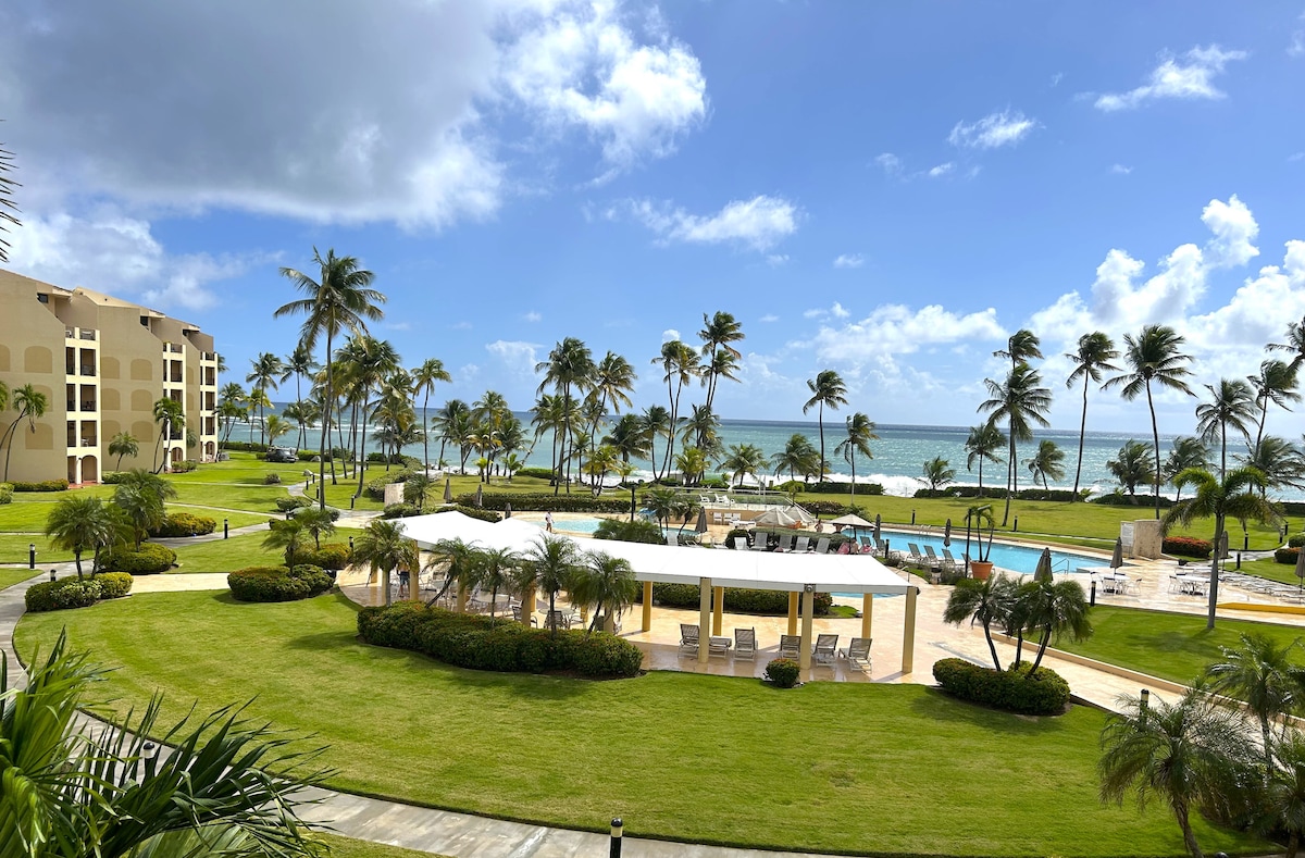 Este apartamento de playa se encuentra en Las Palmas Doradas en Palmas del Mar Humacao, una de las mayores urbanizaciones orientadas a resorts en el Caribe. Cerca de la selva tropical de El Yunque, spas, restaurantes y tiendas. Palmas del Mar tiene más de seis millas de frente al mar Caribe, dos campos de golf de 18 hoyos, hoteles, restaurantes, tiendas, todo dentro de un paseo en carrito de golf que está disponible para alquilar en el hotel de al lado.