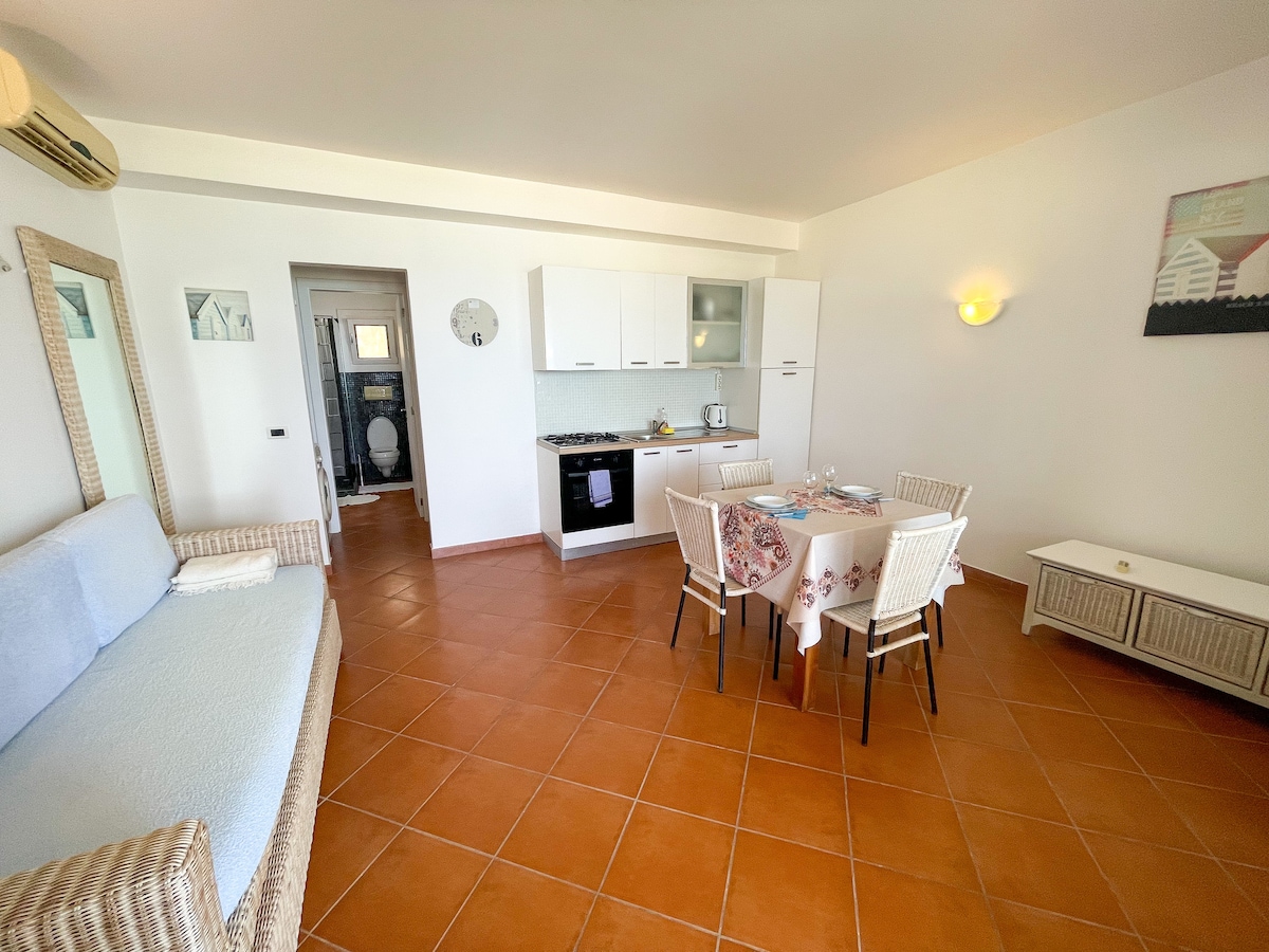 Apartamento frente al mar, equipado con todas las comodidades y una decoración bohemia elegante enriquecida con detalles en materiales en bruto como madera y cuerdas recuperadas. El jardín con vistas al mar es un lugar encantador para almorzar o pasar una tarde de descanso, y se vuelve mágico con el juego de luces nocturnas. La ubicación es la mejor: frente al mar y a 2 minutos a pie del centro.