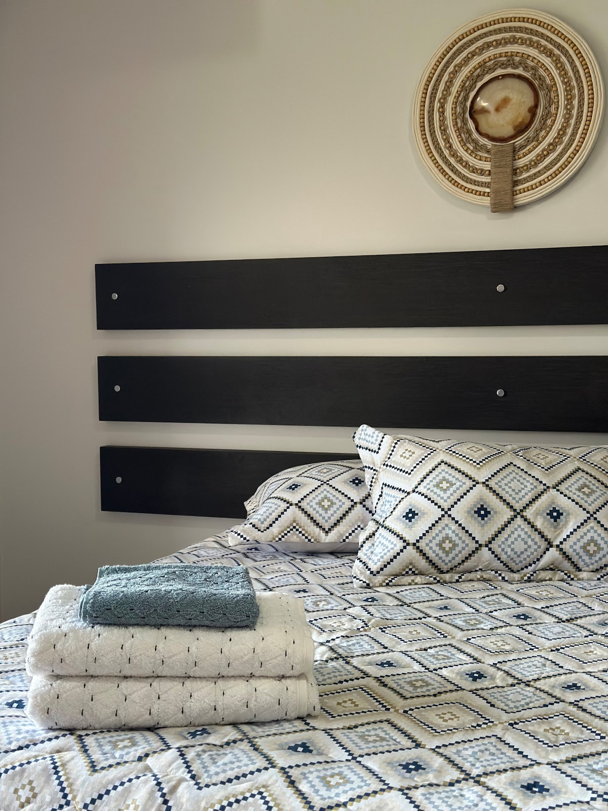 Siéntete como en casa, una familia, un lugar seguro y céntrico. 2 dormitorios, 1 baño, sala de estar y cocina combinadas y 1 PLAZA DE APARCAMIENTO cubierta. Habitaciones con aire acondicionado frío/calor. Balcón con parrilla. 7 camas disponibles: en el dormitorio 1: 3 camas individuales y 1 colchón individual adicional En el dormitorio 2: 1 cama tamaño queen y 1 colchón individual En la sala de estar: 1 sofá cama Ofrece utensilios de cocina, toallas y ropa de cama ya incluidos en el precio de la reserva. Junto al mercado Alberti, que está abierto todos los días hasta las 10 p. m.