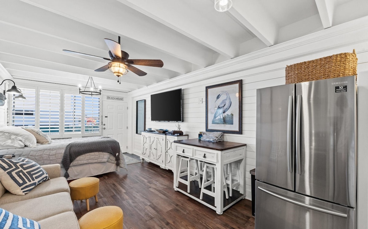 Esta adorable unidad de estudio 1 BR/1 BA en la planta baja está en el centro de la subdivisión residencial de Bahama Beach de PCB (playas menos concurridas que las áreas de apartamentos grandes y de gran altura). La playa está literalmente cruzando la calle de 2 carriles. Las comodidades incluyen habitación privada con entrada privada, baño con ducha a ras del suelo, mininevera, cafetera de tamaño completo, microondas, horno tostador, ¡EXPLOSIÓN XFinity! Wifi, cochera en tu puerta.