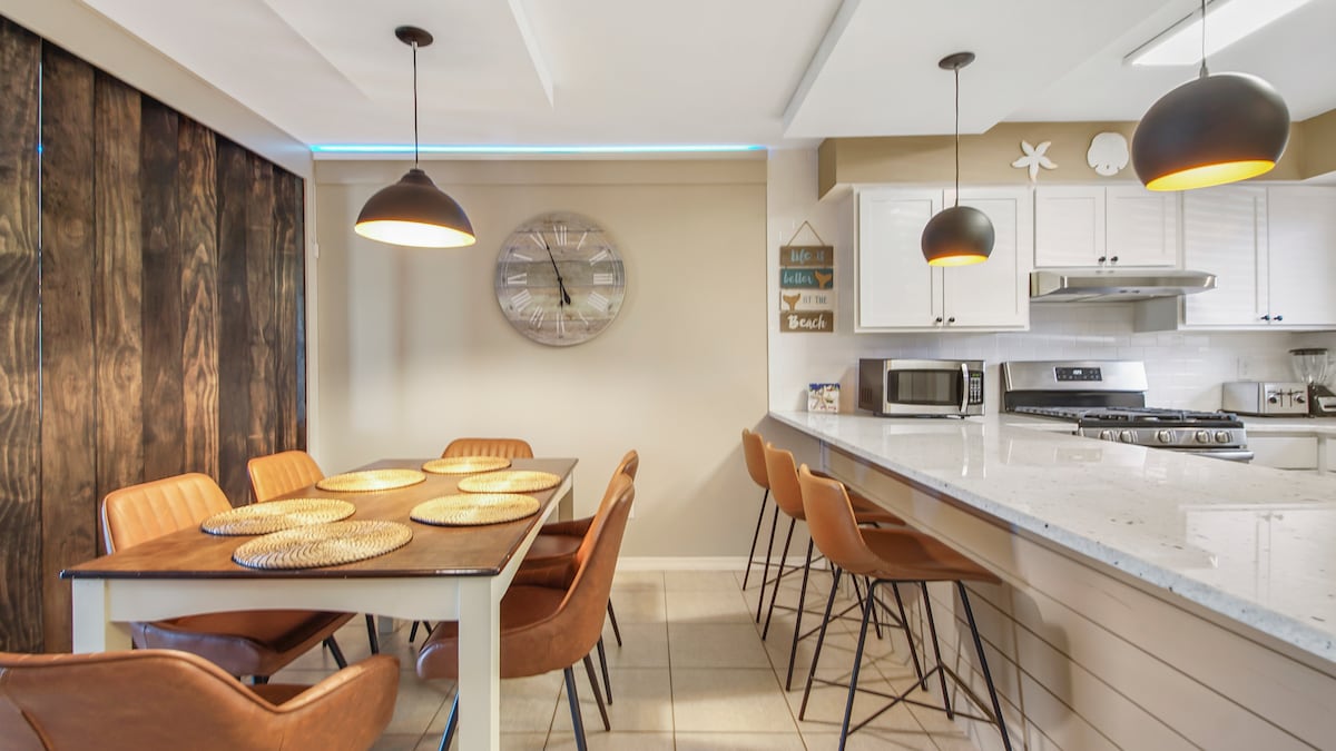 A ☀ 5 minutos a pie de la playa. A poca☀ distancia a pie de restaurantes, comida rápida y tiendas. Se admiten☀ perros por una tarifa de mascotas. Barrio ☀ céntrico y tranquilo. A ☀ minutos de Pier Park y Frank Brown Park. ☀ Patio vallado con jacuzzi, chimenea, zona de picnic, cornhole. Perfecto para aves de nieve, familias, parejas o grupos pequeños que quieran hacer muchas cosas después de pasar el día en la playa. Capacidad para 6 personas: Dormitorio 1: cama tamaño king + cama nido doble (extraíble) + baño en suite Dormitorio 2: cama tamaño queen Sala de estar: silla extraíble de tamaño individual
