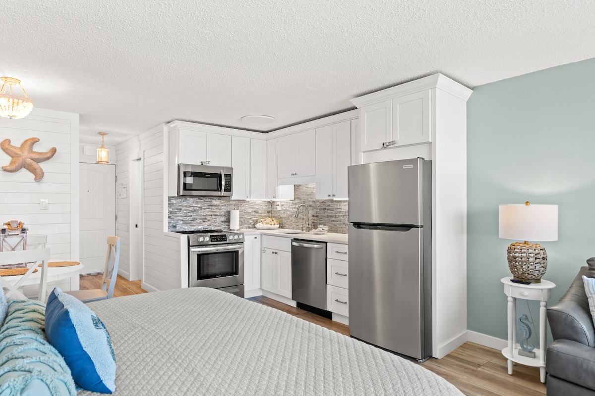 Ubicado en la Torre 1 en el noveno piso, nuestro estudio ofrece impresionantes e incomparables vistas panorámicas del Golfo de México. Este apartamento frente al mar cuenta con muebles estándar y un amplio espacio, lo que lo convierte en la oportunidad perfecta para una escapada romántica en uno de los resorts más populares de PCB: Majestic Beach Resort. Este espacio se sentirá como un hotel a pocos metros de la playa. El servicio de playa está incluido (2 tumbonas y 1 sombrilla) del 1 de marzo al 31 de octubre, valorado en 60 $ por día.