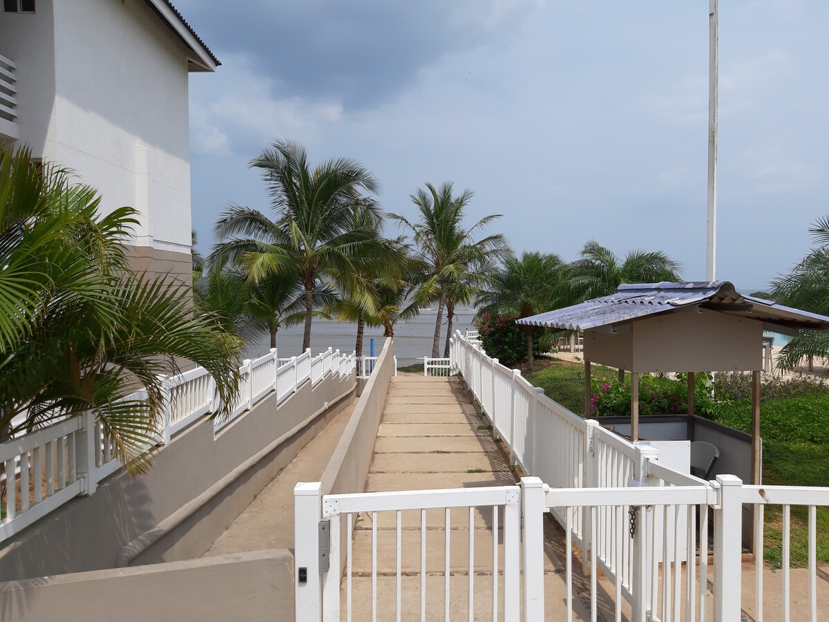 Lindo apartamento: confortable, fresco y relajante... las camas disponibles muy cómodas y con cocina full equipada con lavadora y secadora, ideal para estancias largas. El edificio con 3 piscinas grande y una de niños, cancha de voleibol, área de barbacoa, frente al mar y con acceso a playa. Internet de buena calidad y servicio de cable para estar conectados y teletrabajo, a 15 min de Coronado donde hay supermercados y plazas. Aceptamos Mascotas solo para estadías superiores a 5 días...