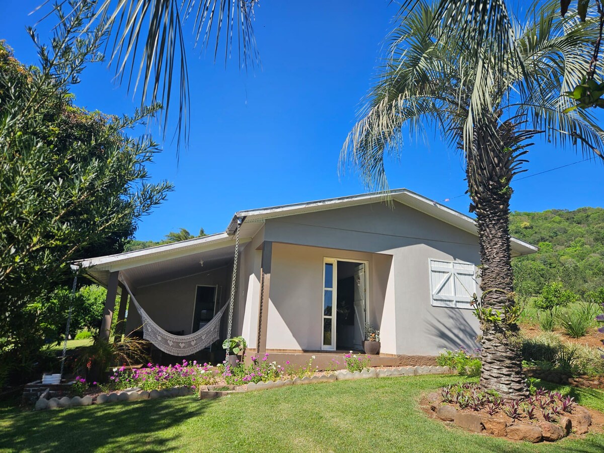 ¡Tu escapada de ensueño está aquí! Una casa completa con dos dormitorios, baño, sala de estar, cocina con purificador de agua, garaje y un patio increíble. Disfruta de la comodidad del aire acondicionado y relájate con la televisión o una barbacoa en nuestra barbacoa giratoria. En un entorno tranquilo, cerca de la ciudad de Santo Cristo, es el lugar perfecto para crear recuerdos inolvidables. Ven y vive momentos especiales. OBS: tiene filtro de agua, y el agua del pozo artesiano es tratada por el municipio (cloración)