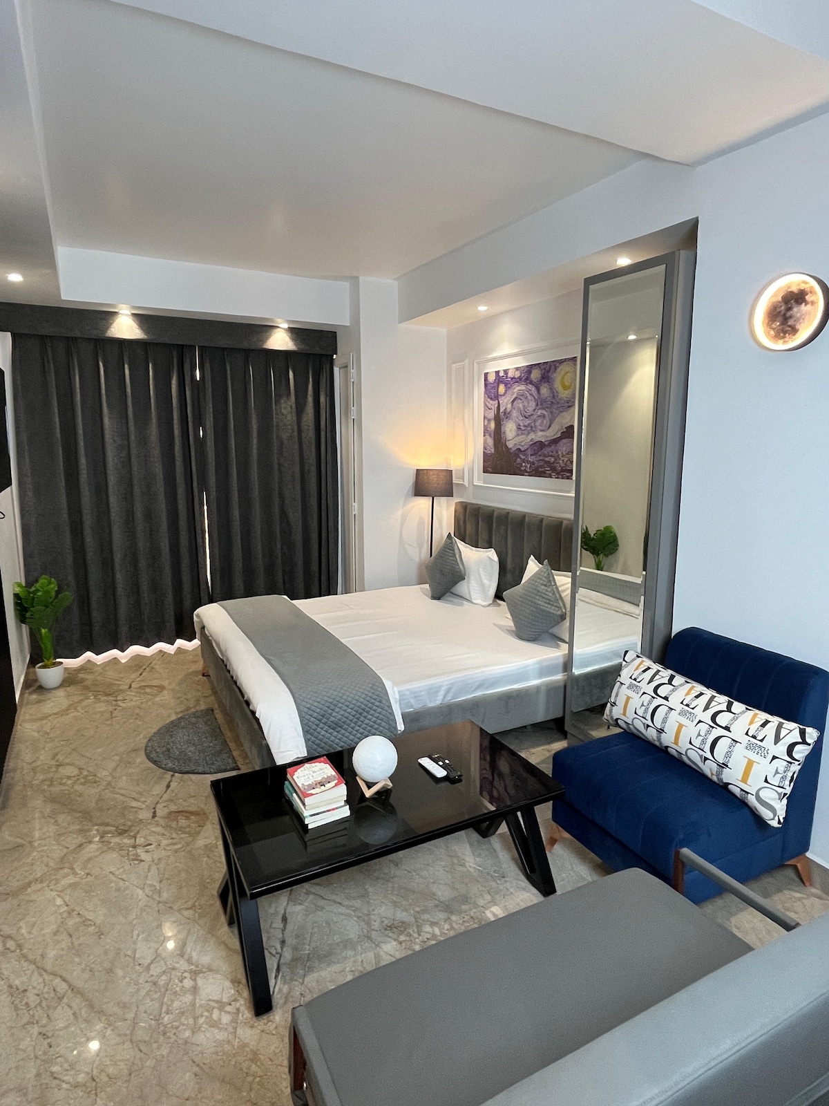 Bienvenido a nuestro encantador apartamento de 1 dormitorio, perfectamente diseñado para una estancia cómoda y conveniente. Ubicado en una comunidad cerrada segura, nuestro apartamento ofrece la combinación ideal de privacidad y accesibilidad. Convenientemente ubicado: - A 20 minutos del aeropuerto internacional de Mohali. - A 15 minutos del Hospital Fortis, Mohali. - A 10 minutos del centro comercial CP 67. - A 10 minutos del mercado Jubilee Walk. - A 15 minutos de la Universidad Amity. Ideal para: - Familias pequeñas - Turistas médicos - Personas que viajan solas - Viajeros de negocios - Parejas