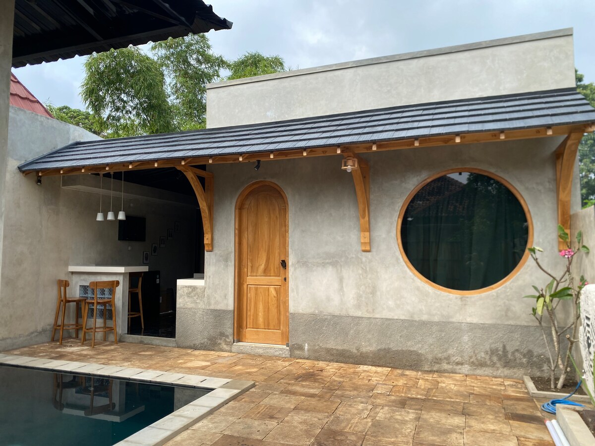 Omah Sabrang es un proyecto único de casa de madera. Ubicado en la naturaleza, justo al lado de un arroyo, es el lugar perfecto para viajeros aventureros con ganas de una nueva experiencia. Omah Sabrang será tu casa privada de madera, una escapada perfecta del ajetreo y el bullicio de la ciudad. Nuestra cálida casa de madera se encuentra en el barrio residencial seguro y tranquilo del pueblo de Kasongan, a solo 15 minutos de la ciudad central de Yogyakarta (Malioboro y Palacio del Sultán) y del espacio de arte.