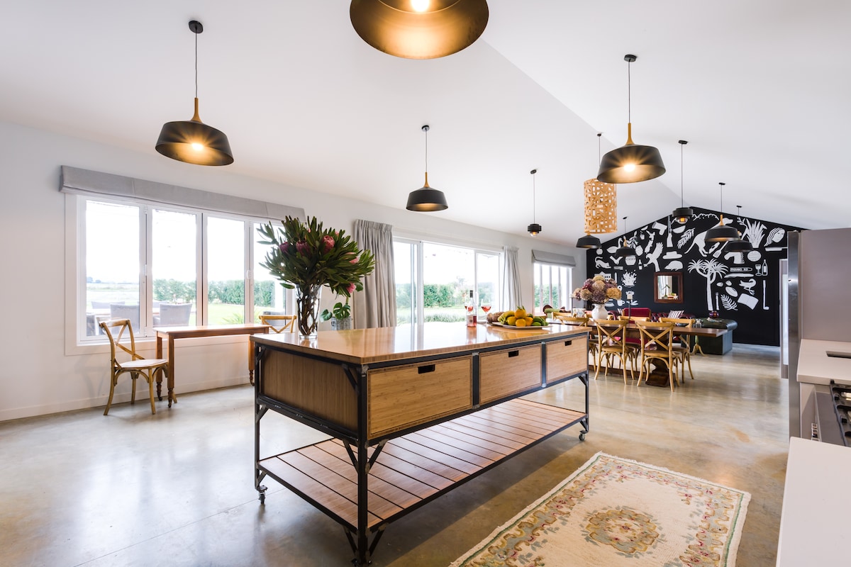 A world away from the world -Just 5 mins from Greytown. Situated on a small organic farm in a beautiful garden. Super comfy bed, stylish, mid century decor. Wake up to birdsong, star-gaze from the outside bath while listening to the call of the Ruru. Loll by the pool or borrow the bikes to go exploring. Free breakfast of good coffee, homemade muesli & fruit, artisan bread and spreads. Free-range eggs & bacon available for you to cook for $25 pp. Drive on parking, heat pump, wifi & tv.