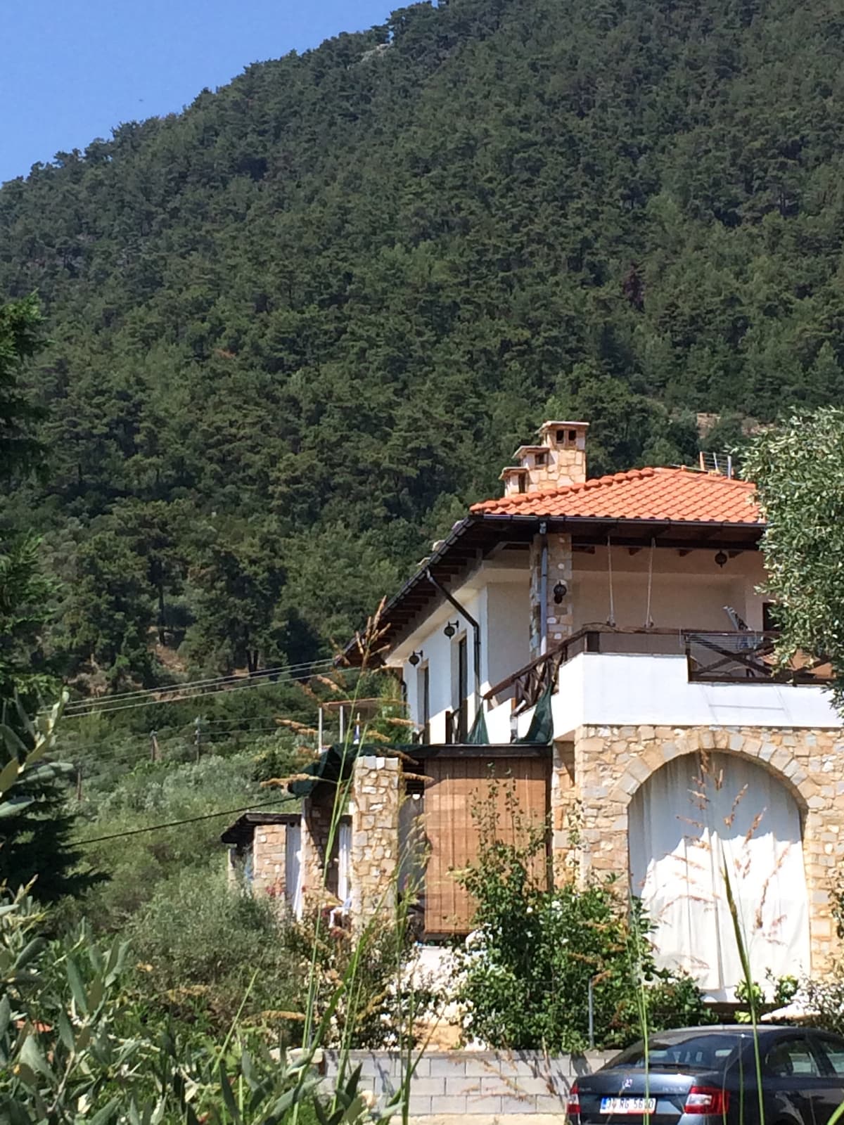 Ubicado en el pueblo tradicional de Theologos, Thassos. LINόS se encuentra cerca del centro del pueblo, pero lejos del ruido, Proporcionará un alojamiento tranquilo. Está a solo 10 km del mar y eso significa un trayecto de 10 minutos en coche por una hermosa carretera rodeada de pinos. Los 720 m2 de la propiedad le darán una sensación de tranquilidad y calma a su familia. Si tienes MASCOTAS, será la casa ideal para ellos porque toda la finca está rodeada por un muro de piedra con valla.