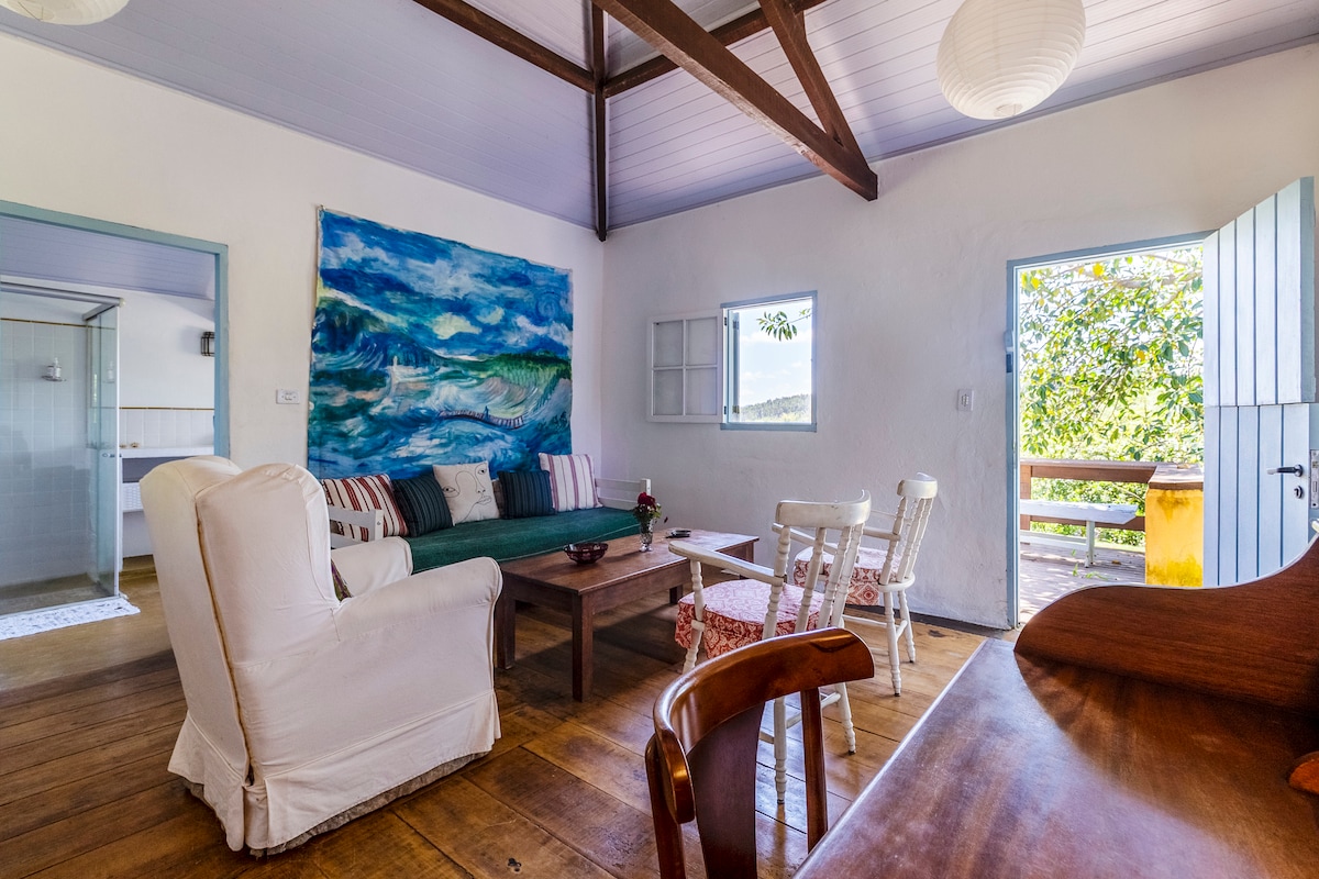 Alójese en el Chalé Rudá y venga a disfrutar de la exuberante naturaleza del entorno. Aquí encontrará hermosas playas, cascadas y senderos con experiencias únicas. El Chalet es de estilo rústico totalmente equipado con habitaciones integradas en la parte inferior y el dormitorio en la parte superior accesible por escalera. ¡Tu mascota es bienvenida aquí! Se encuentra en un barrio residencial que conserva sus caminos de tierra. Cuenta con 2 restaurantes en la misma calle y la Praia da Lagoinha se encuentra a 550 metros a pie del Chalet.