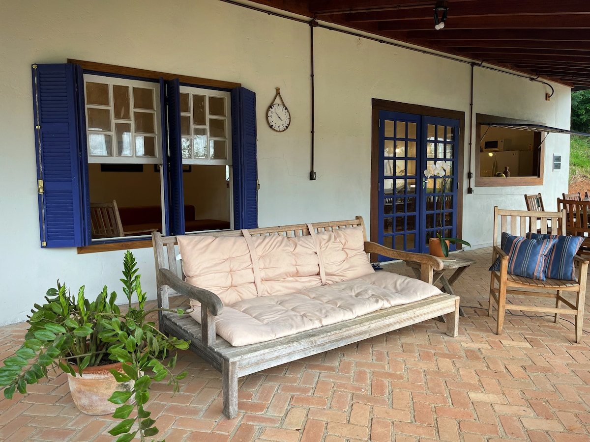 Estamos a 1h40 de SP y a 2,6 km de Tamoios, en Paraibuna/SP, frente al río Paraíba do Sul. Ofrecemos una casa rústica y acogedora con toda la infraestructura, aire acondicionado en las 3 habitaciones, piscina y jacuzzi climatizado. Tenemos una vista privilegiada del amanecer. ¡¡¡Lugar encantador para descansar, estar en familia y para la oficina en casa!!! ¡Es posible meditar, cocinar, leer, escuchar música, ver películas, jugar al ajedrez, billar, además de otras tareas con mucha comodidad, privacidad y bienestar!