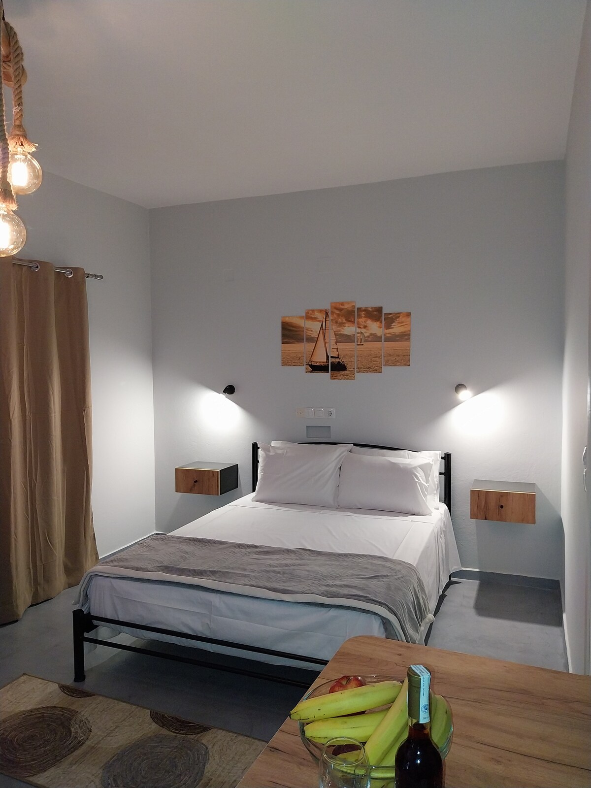 Καλαίσθητο διαμέρισμα 45 τμ με υπέροχη θέα στον φυσικό κόλπο της πόλης της Σάμου. Η απόσταση από το κέντρο είναι 1,2 χλμ., με ιδιωτικό χώρο στάθμευσης. Βρίσκεται σε μια ήσυχη και ασφαλή γειτονιά και διαθέτει ενιαίο χώρο καθιστικό με κουζίνα, μεγάλο μπαλκόνι, ένα υπνοδωμάτιο και ένα μπάνιο.Μπορει να φιλοξενήσει έως τέσσερα άτομα καθώς διαθέτει διπλό κρεβάτι και καναπέ που γίνεται κρεβάτι. Στην περιοχή υπάρχει σούπερ μάρκετ (1 χλμ),παραλία(1,5 χλμ), γυμναστήριο (200μ) .