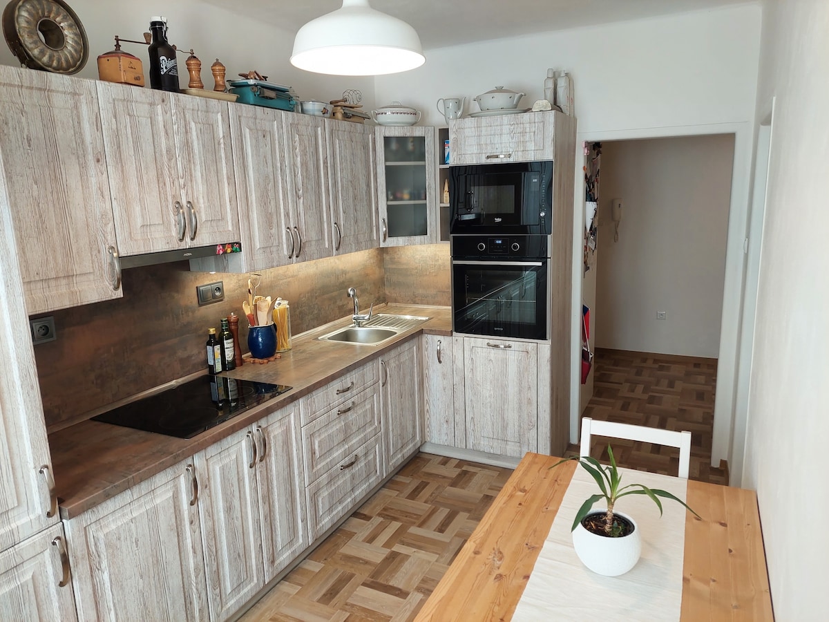 Le damos la bienvenida a nuestra casa de familia, donde tendrá a su disposición un apartamento con entrada independiente. Disfrute de un baño privado con una hermosa bañera, una cocina espaciosa y un lugar para descansar o incluso trabajar. El alojamiento también es adecuado para estancias más largas, ya que aquí encontrará todo como en su propia casa. Lavadora, cocina totalmente equipada con lavavajillas, cafetera, placa de cocción y horno. Aparcamiento delante de la casa, Wi-Fi de alta velocidad o almacenamiento de bicicletas o esquís son una cuestión de rutina. Esperamos verle pronto. Mikuláš y Eva con familia.
