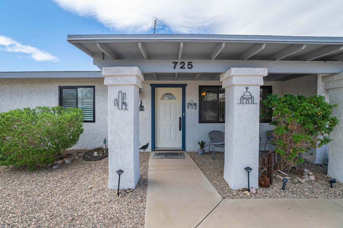 Relájate y disfruta de nuestra bonita casa del lado sur. Interesantes obras de arte locales, mucho aparcamiento para barcos fuera de la calle, patio trasero sombreado por la tarde con una bonita parrilla Weber para relajarse después de un día en el lago. Patio trasero amurallado. Relajante patio delantero sombreado por la mañana para disfrutar del café de la Kurig. Incluso ofrecemos bicicletas, flotadores y varios juguetes acuáticos y de playa. Wifi, cable, TV en streaming, lavandería completa, todo lo que necesitas para tu escapada a Havasu. Permiso LHC 035922.