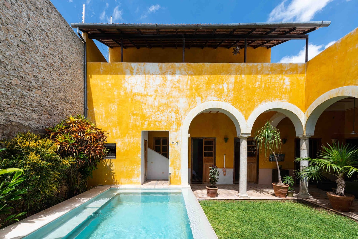 ¡La construcción aledaña ha finalizado! Tenemos para nuestros huéspedes ¡¡ESTACIONAMIENTO PRIVADO GRATIS!! Cuenta con todo lo necesario: - Wi-Fi rápido y sin interrupciones - Aire acondicionado en todas las áreas - Piscina privada DISTANCIAS CAMINANDO A 1 minuto del Parque Santa Lucía A 9 minutos de la Plaza Grande A 6 minutos del Corredor Gastronómico A 15 minutos del Parque La Plancha A 7 minutos de Paseo de Montejo
