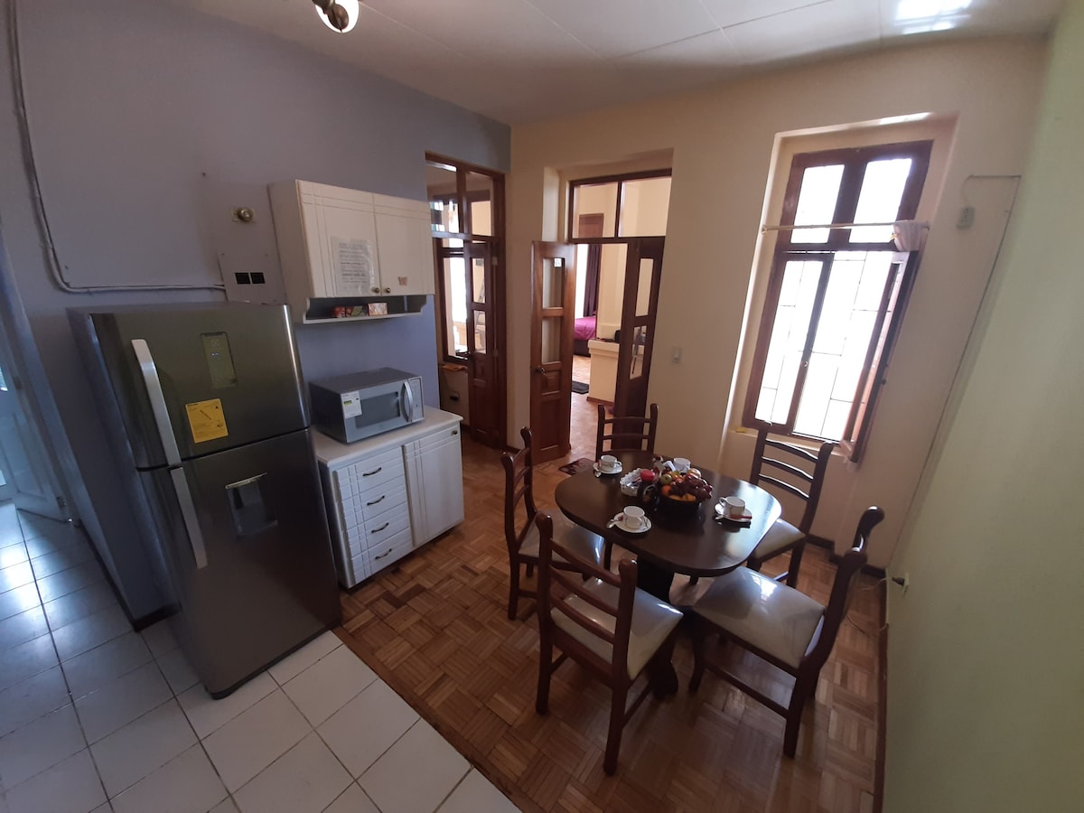 Cozy apartment remodeled in the colonial quarter of Quito, located on the third floor, a loft with a spectacular panoramic view of the Historic Center. It has two bedrooms, two bathrooms, a living room, a dining room, and a kitchen equipped with filtered water and essential implements to meet our guests' needs. The comfortable facilities provide good relaxation. We have Wifi 620Mbps a 1.05Gbps, a telephone line, a television with Netflix, and heaters for the shower and kitchen sinks.