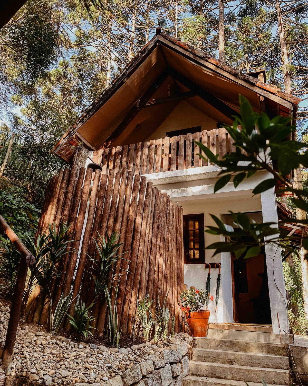 LÍRIO CHALET: DONA VERA INN – Un refugio en la naturaleza con vistas a la montaña Escápate del ajetreo y vuelve a conectar con lo que realmente importa en Lírio Chalet. Rodeado de una exuberante vegetación y con unas impresionantes vistas a las montañas, este chalet se diseñó para ofrecer comodidad, tranquilidad y una estrecha conexión con la naturaleza. Perfecto para parejas o grupos pequeños que buscan descanso, momentos de paz y recuerdos duraderos.