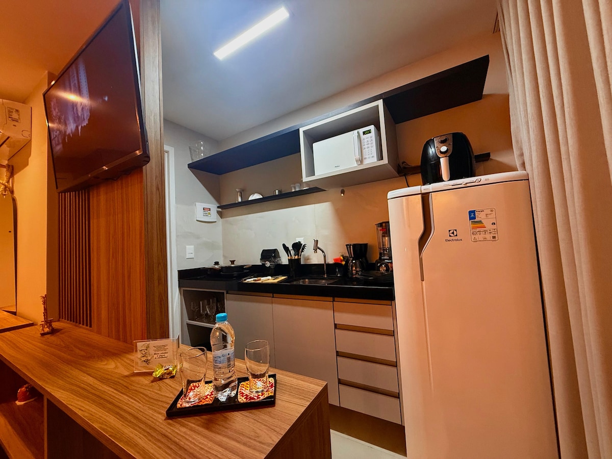 Loft em Maceió perfeito para relaxar: ambiente moderno, aconchegante e com tudo que você precisa para se sentir em casa. Nosso loft foi pensado para oferecer uma experiência completa, unindo aconchego, funcionalidade e uma vista incrível. Totalmente equipado, o espaço conta com cozinha completa com fogão cooktop, forno, geladeira, micro-ondas, liquidificador, sanduicheira , cafeteira, secador de cabelo e ferro de passar roupas, ideal para quem gosta de se sentir em casa mesmo durante a viagem.