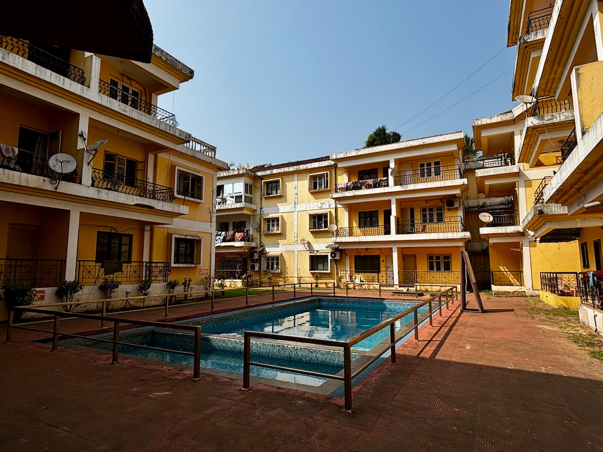 10 April to 15 May pool is not functioning. Escape to our serene 1 BHK serviced apartment in the heart of North Goa. With a 'designer delight' aesthetic, this space is a perfect retreat for a short break or an extended holiday. Its 5 minutes from Baga Beach & surrounded by iconic restaurants, clubs . Enjoy access to pool, garden & 24*7 security, making your stay exceptional. This property is a rare gem offering unmatched beauty. Famous Club Diaz just 500 meters away No visitors Allowed