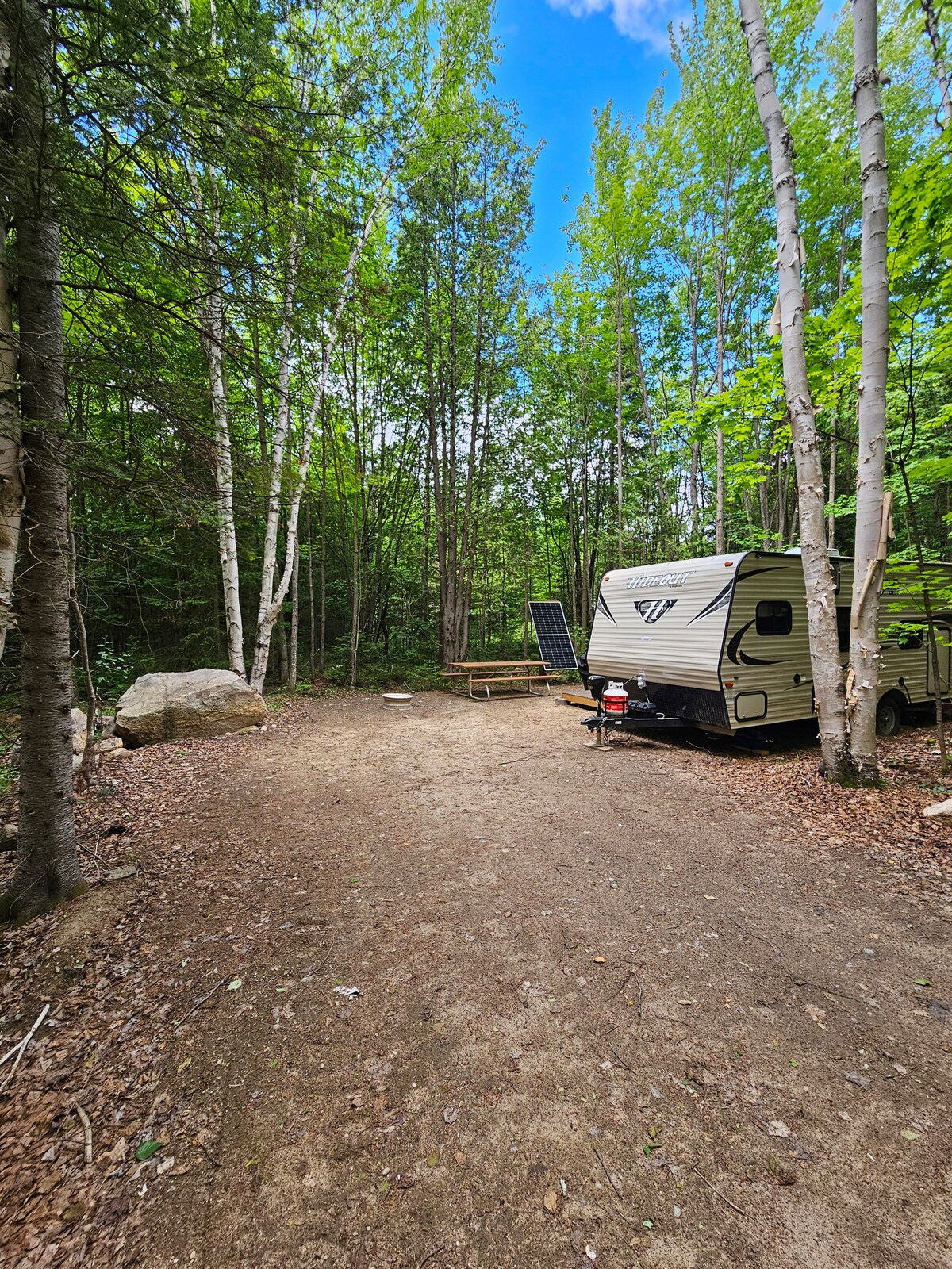 Hermoso y limpio remolque de 40 pies, área privada. Utiliza solo el baño exterior, por favor. Una habitación tiene literas. Individual arriba, pequeña doble abajo. Por favor, trae tus propias sábanas, saco de dormir y toallas. No se admiten mascotas, por favor, zona libre de alergias. Chimenea eléctrica, chimenea al aire libre, hermosa zona para salir a caminar. ¡A pocos minutos en coche de The Kee! Torrance Barrens a 18 minutos. La playa más cercana es Jaspen Beach, a pocos minutos en coche. Consulta mi guía para descubrir lugares fantásticos que visitar cerca en coche. Café/té, crema/leche/azúcar y magdalenas, ensalada de frutas.