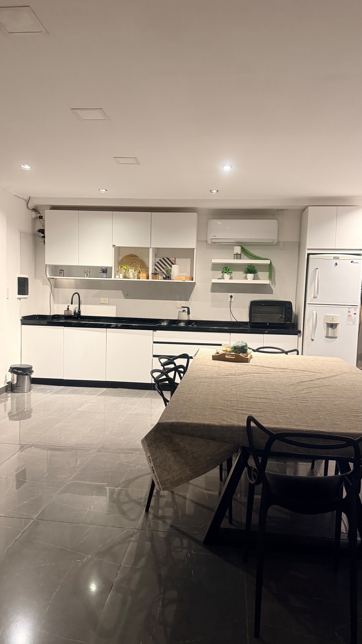 Amplio departamento con balcón hacia la calle y parrilla en un quinto piso. Bien ubicado muy cerca de todo, cuenta con dos dormitorios, uno con cama matrimonial y el otro con dos camas individuales. Tanto los dos dormitorios como el living comedor cuentan con aire acondicionado frío calor. El balcón es muy amplio y tiene hermosas vistas de la ciudad. Cuenta con lavadora de ropa, cocina, nevera y todo los que necesites si quieres cocinar. Ideal para familias o grupos de amigos.